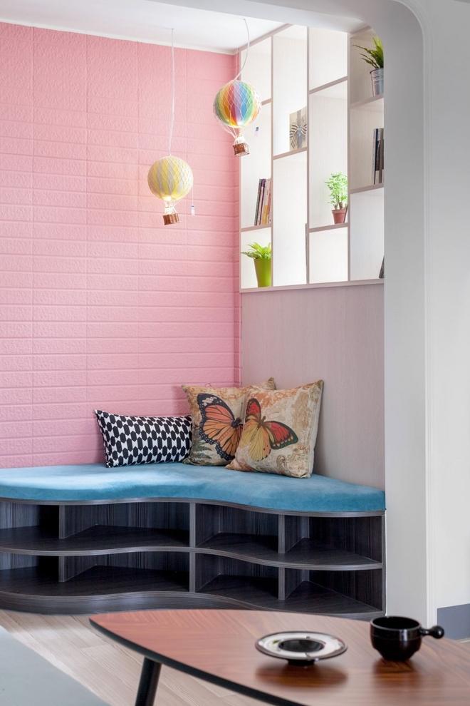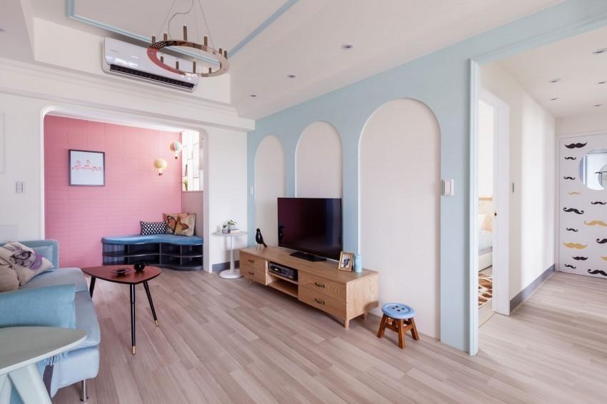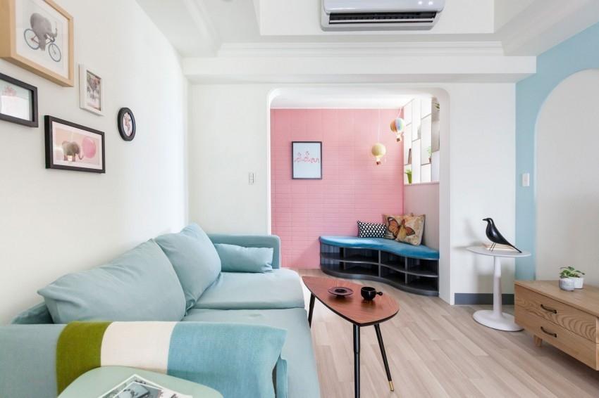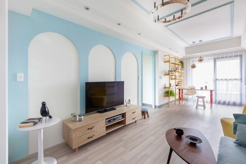 空间整体色调素雅,现代感极强,彰显一种典雅精致的小资情调,张扬着年轻人所追求的生活品位。为了让居室更显简约沉稳,并配以一些亮色,让整个空间既显得时尚,又透露出几分活泼与灵动,营造出一种和谐温馨的空间氛围。