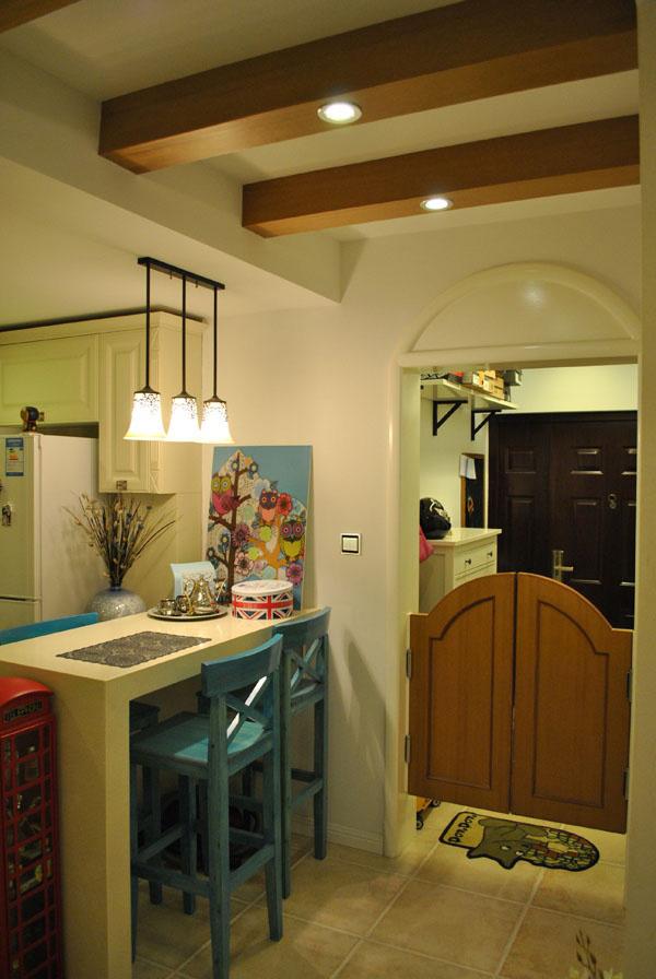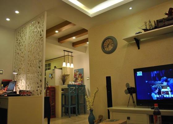 【55平小户型打造温馨家居】舒适的小木床以及每一款温馨的卧室家具让整个小户型的蜗居生活倍感温暖。色彩的柔和搭配装饰的自然最体现生活情调。看看以下迷你小户型如何打造温馨家居。 客厅和进门鞋柜以栅栏门分开,餐桌虽小但亦可肆意享受一家三口的温馨晚餐 镂空隔断区分客厅和餐厅,下设柜子既可收纳还可以当书桌或休闲使用 开放式的阳台显得客厅大气而有格调